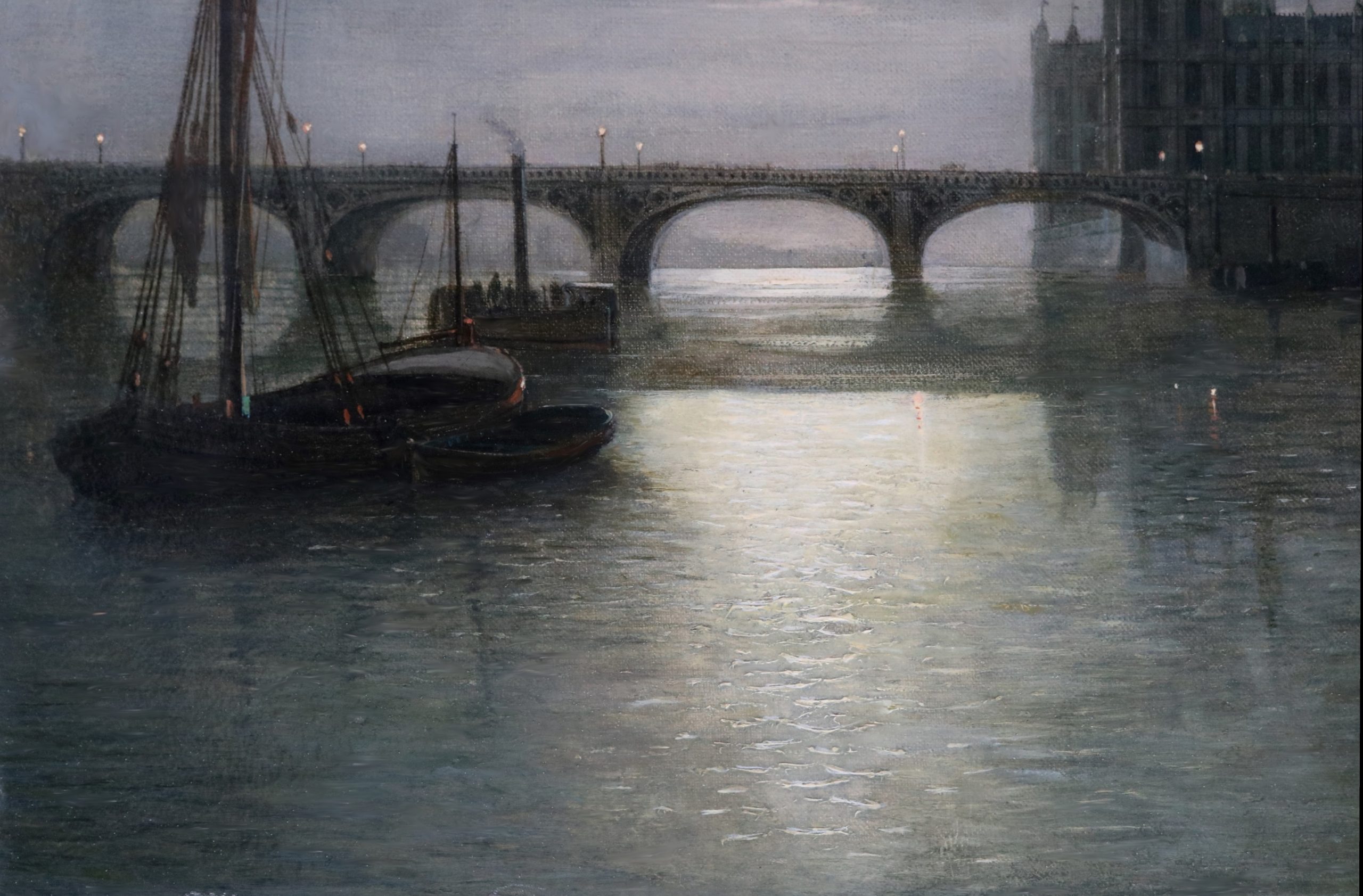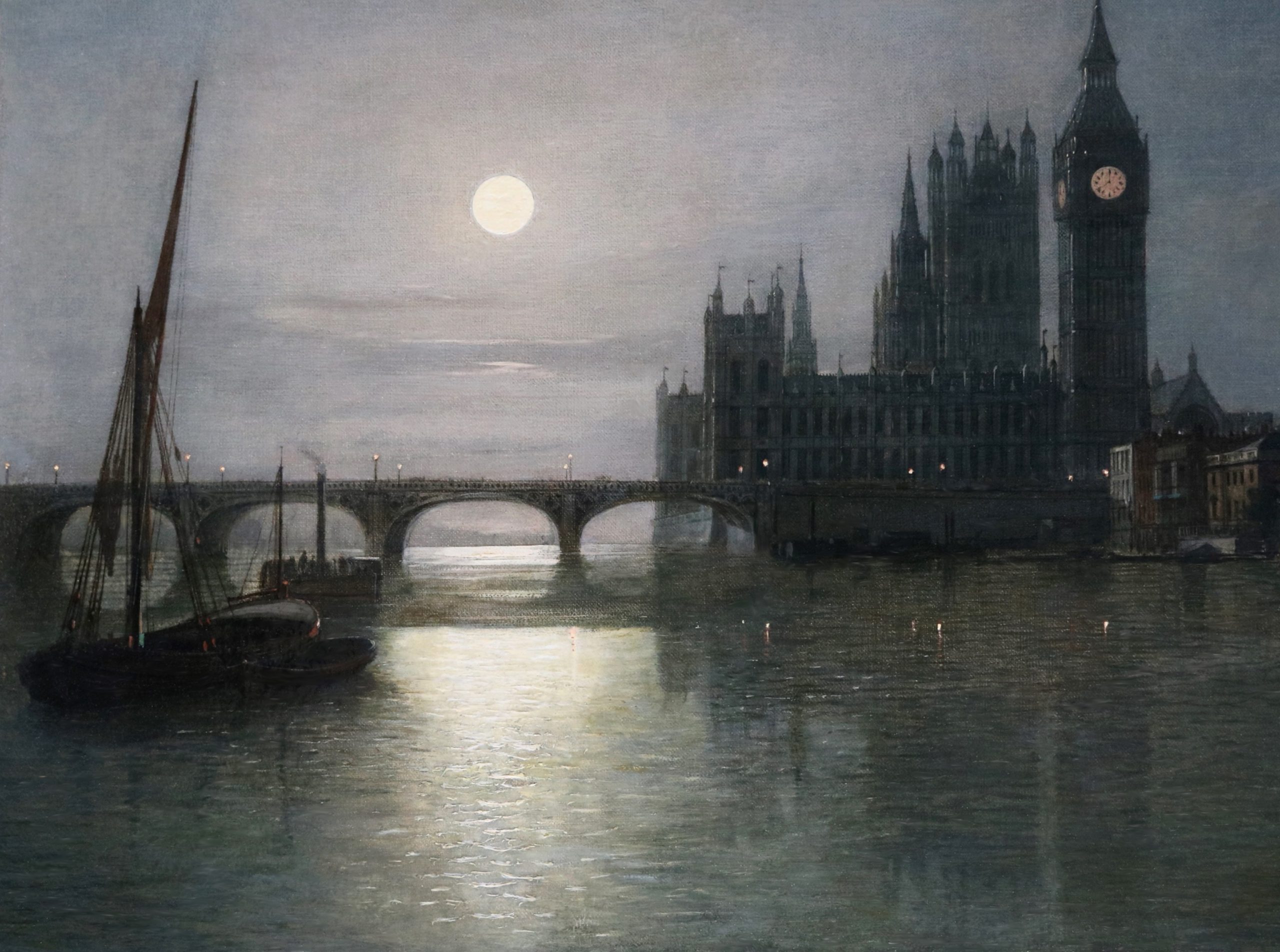 ‘Westminster from the Thames by Moonlight’ by Henry Pether (1800-1880).