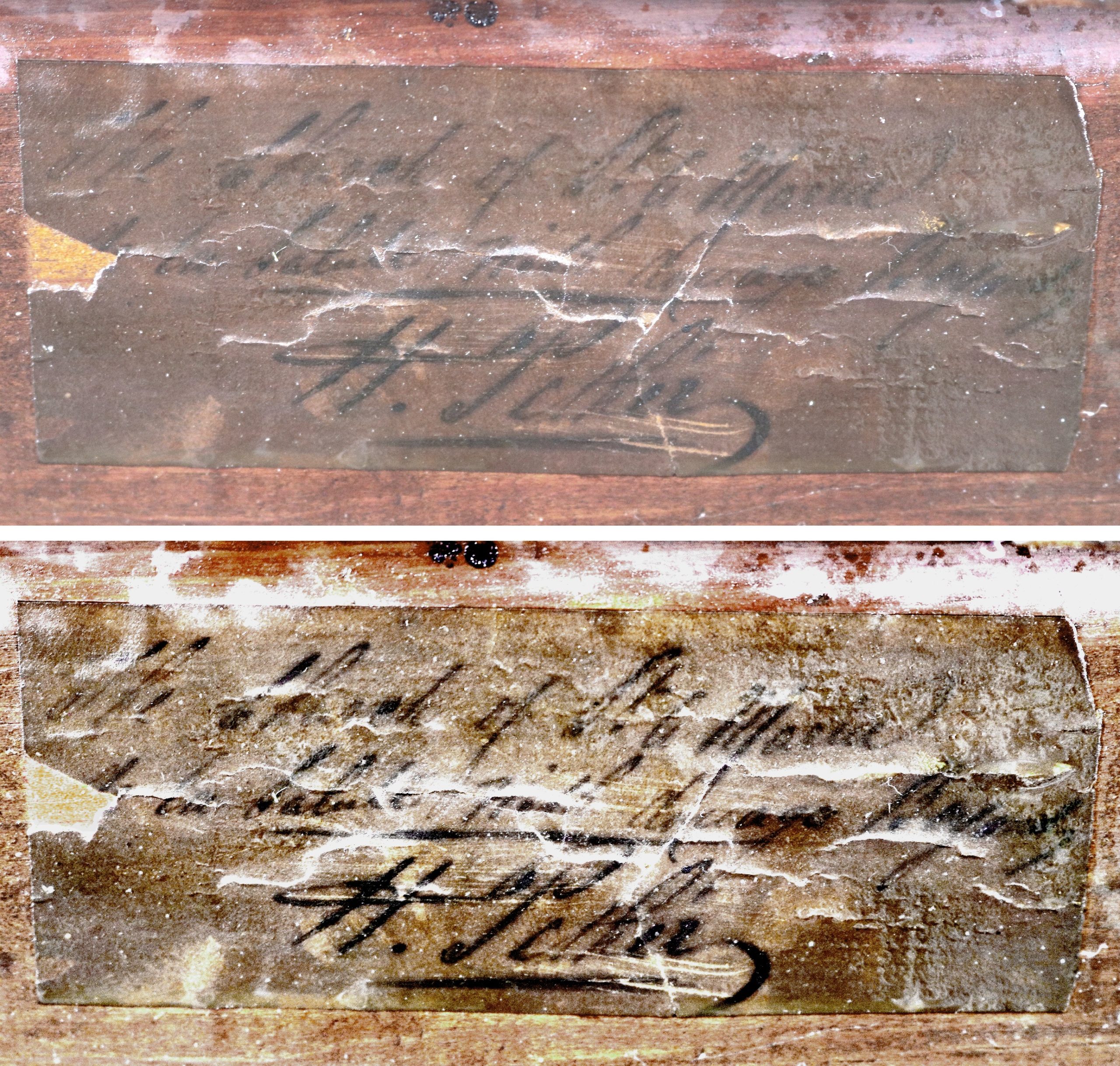Condition: Very good. Professionally cleaned, restored, and re-varnished. Ready to hang.